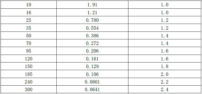 3. 交联聚乙烯绝缘电力电缆导体电阻、标称厚度