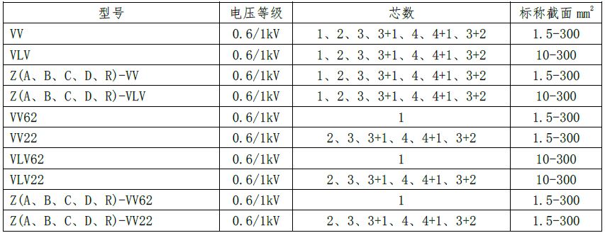 阻燃(A类、B类、C类、D类、R类)铜芯聚氯乙烯绝缘聚氯乙烯护套电力电缆 |