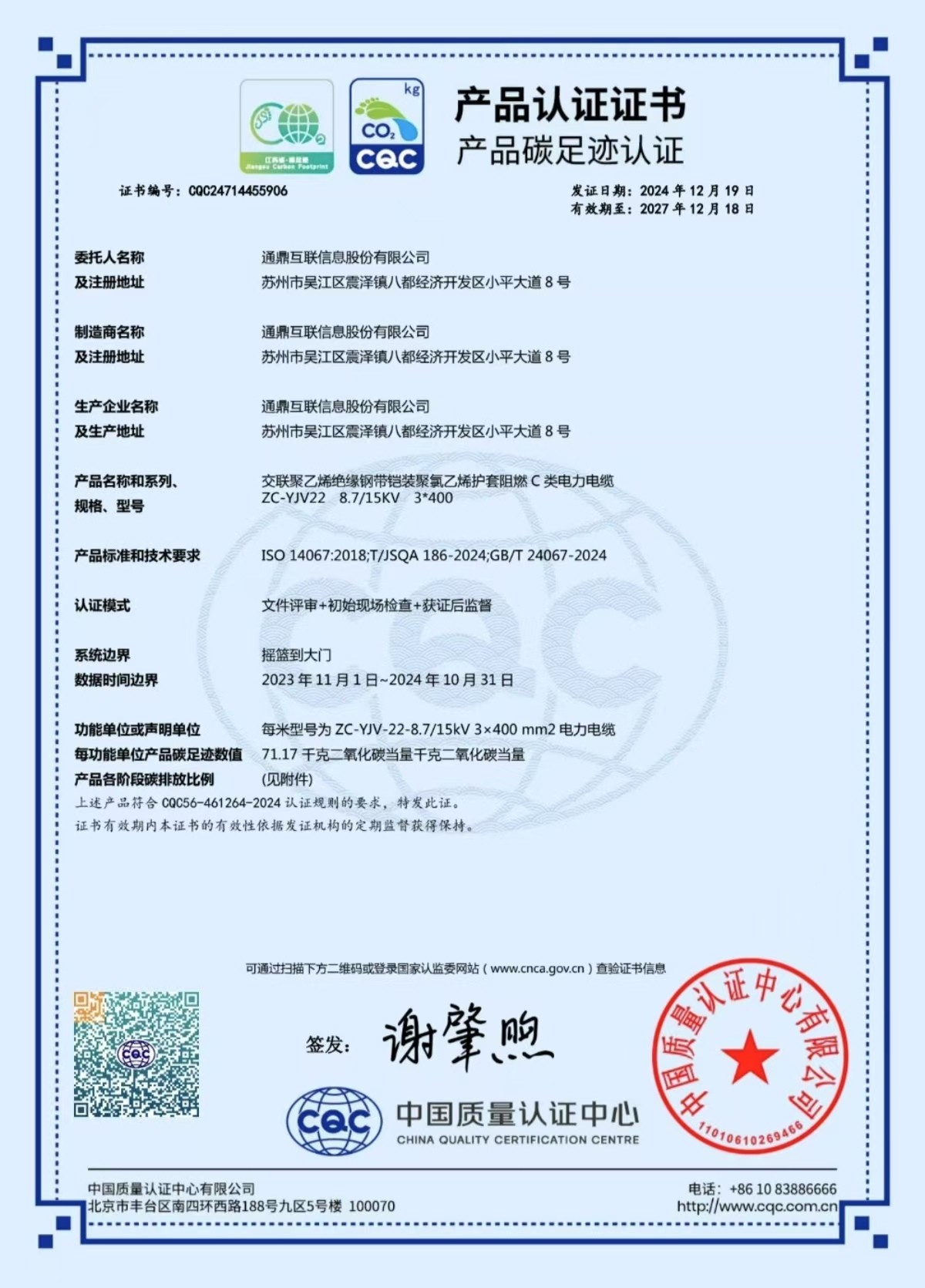 碳足迹认证证书