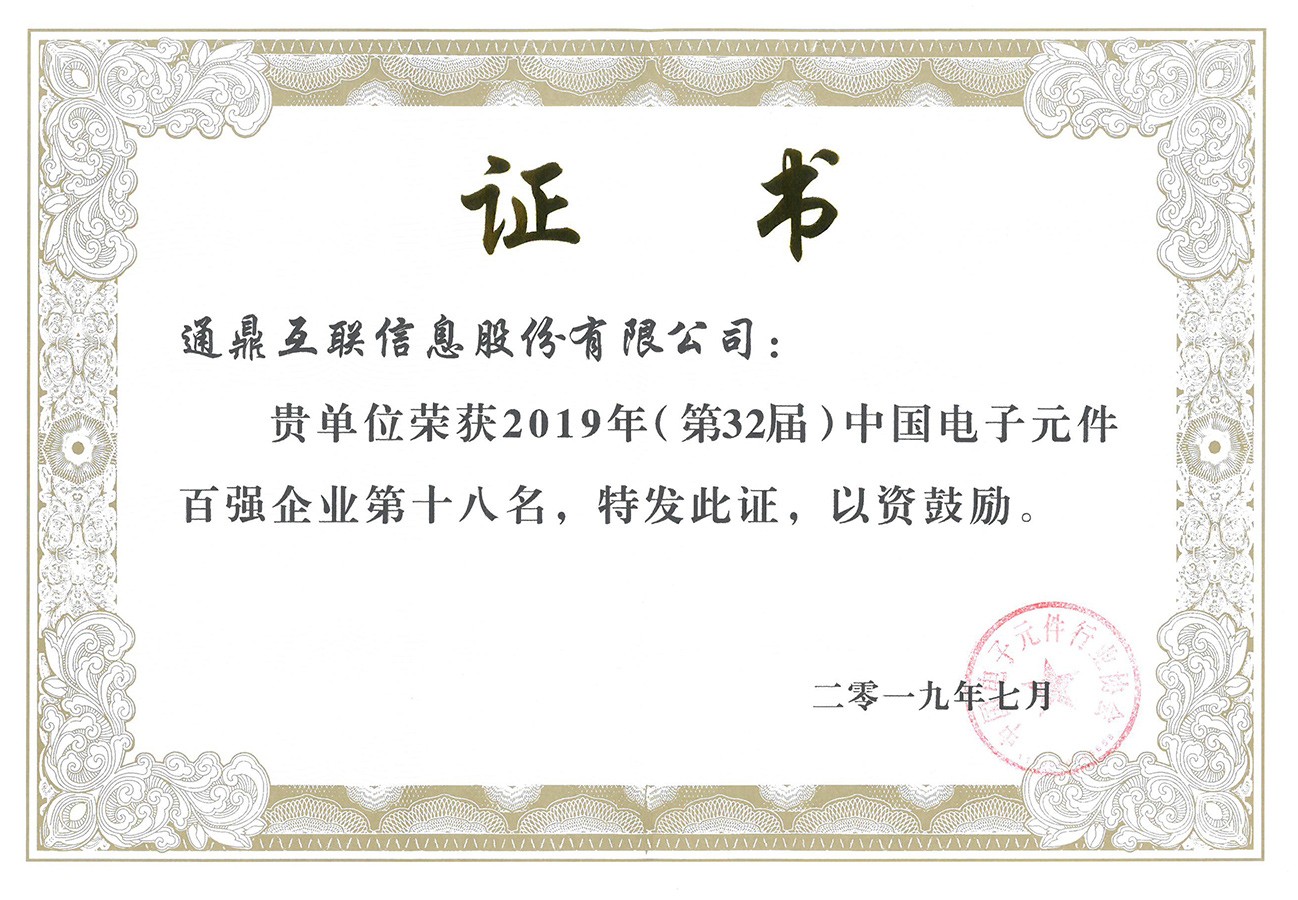 beats365互联荣获“2019年(第32届)中国电子元件百强企业第18名”