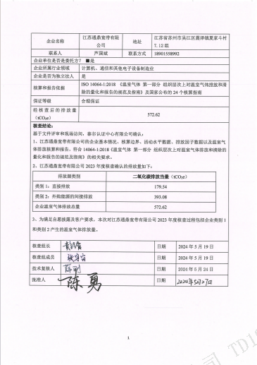 江苏beats365宽带有限公司2023年度温室气体排放核查报告